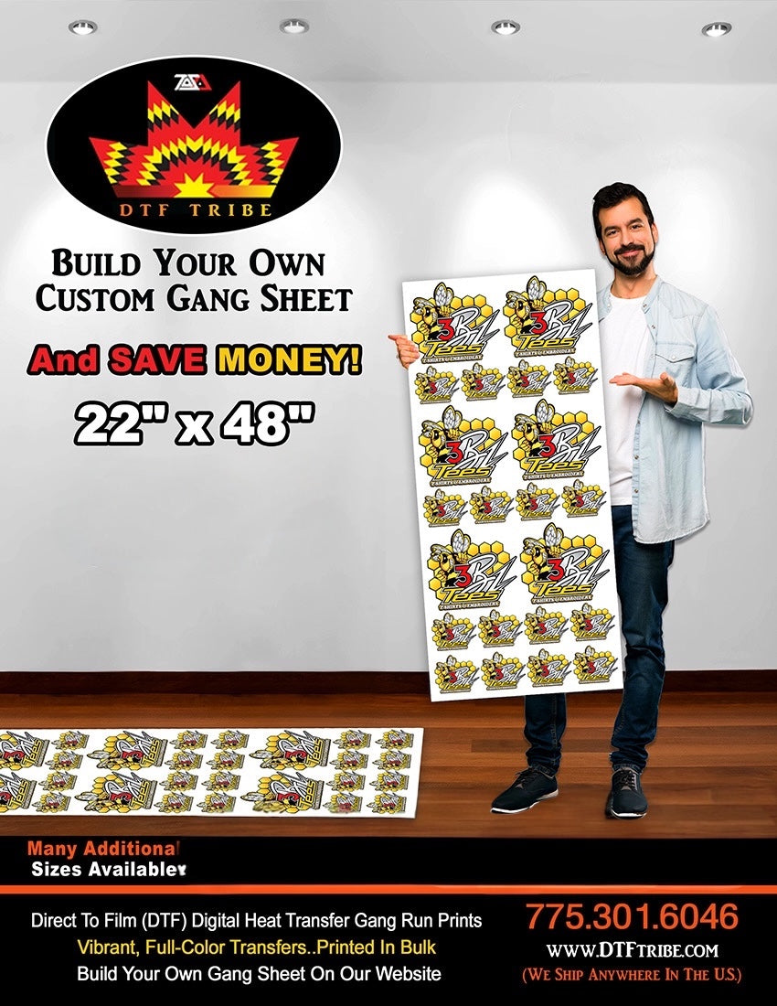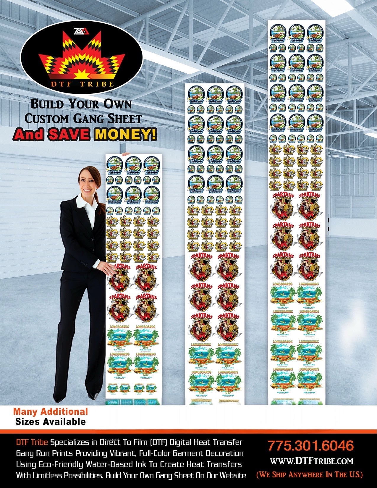 DTF TRIBE is your one stop shop Direct To Film (DTF) Gang Sheet Printing Supplier. Pick your order up locally or we ship anywhere in the United States.